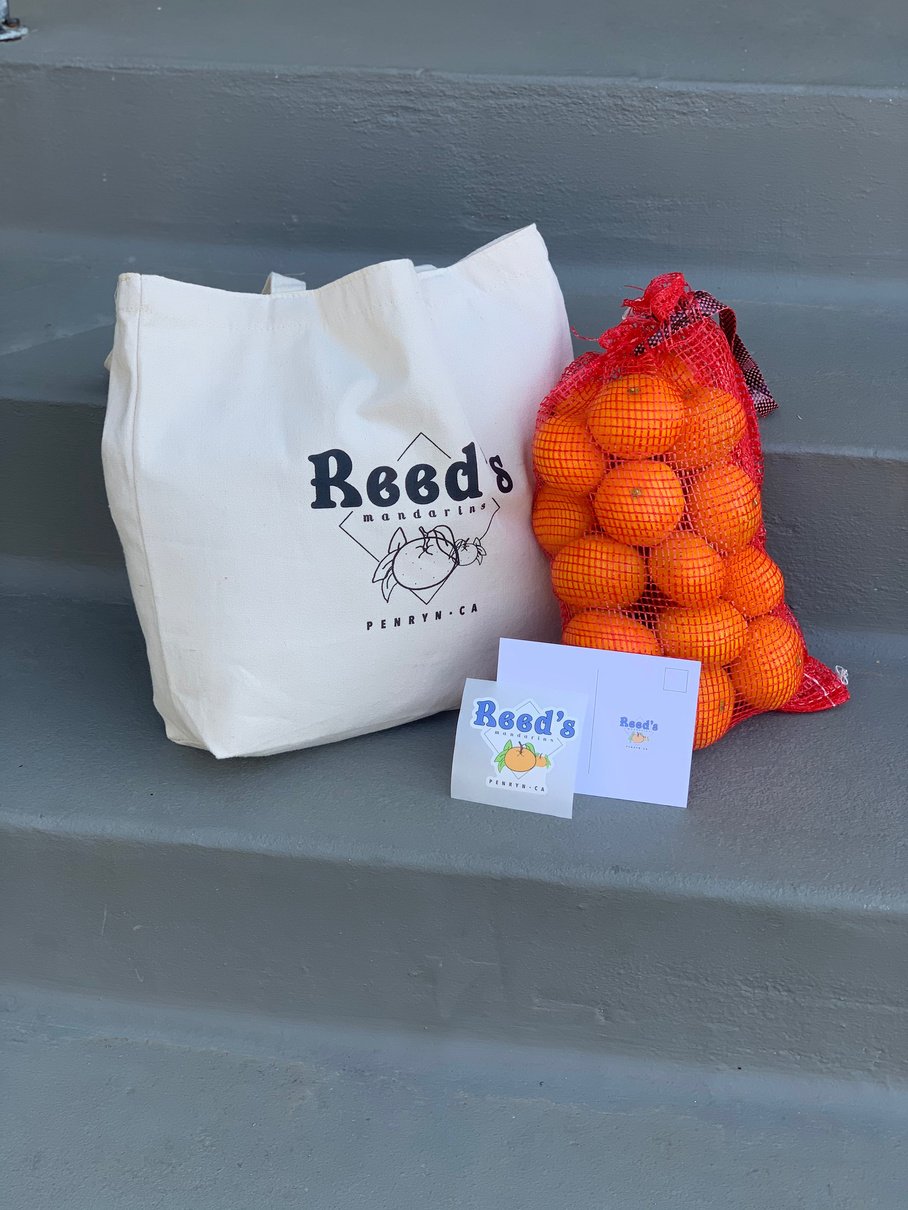 Our ever-popular Mandagrams make the perfect gift! They include 7lbs of mandarins, a canvas tote bag, and a sticker and can be mailed to any of the contiguous United States! See our Instagram for current pricing.